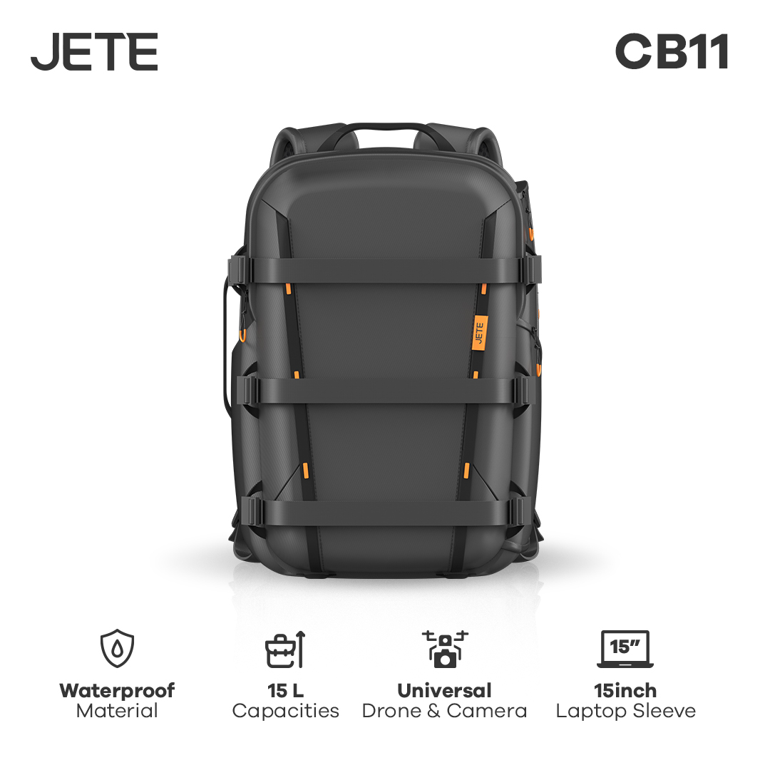 JETE CB11 Series adalah tas punggung yang khusus untuk menyimpan gadget bagi para profesional. Dengan partisi yang lengkap dan desain kokoh, cocok untuk menyimpan drone, laptop, dan kamera DSLR beserta aksesorisnya.