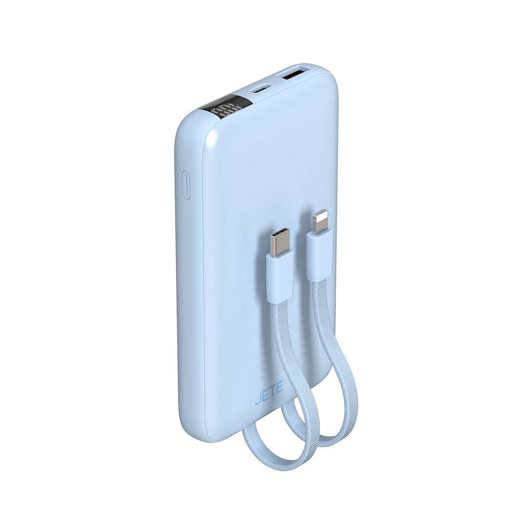Performa output maksimal 22,5W pada powerbank JETE B10 memberikan kecepatan pengisian yang optimal, dipadukan dengan kabel built-in yang selalu siap digunakan untuk menunjang mobilitas tinggi sepanjang hari.