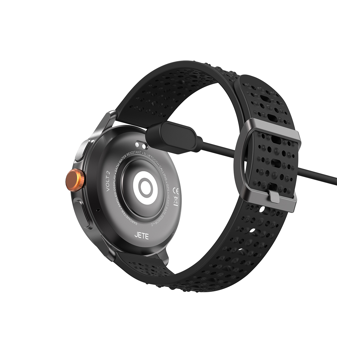 Smartwatch GPS JETE VOLT 2 mengadopsi mode pengisian daya magnetik. Hal ini membuat pengisian daya semakin praktis, cepat, dan optimal. Cukup tempelkan charger ke dua titik yang ada di bagian belakang smartwatch dengan charger tersambung ke sumber listrik, maka aka mengisi daya otomatis.