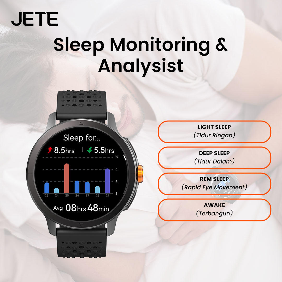 Kontrol dan pantau aktivitas olahraga hingga kesehatan kini jadi lebih mudah dengan aplikasi JETE Connect. Download dan install aplikasinya di smartphone, lalu sambungkan ke smartwatch untuk melihat data capaian olahraga dan kesehatan realtime.