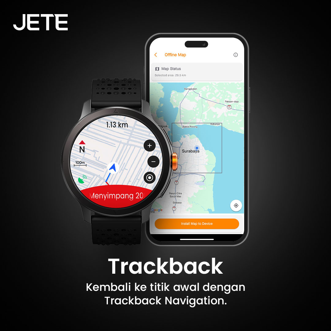 Fitur Trackback yang disematkan pada JETE VOLT 2 memudahkan pengguna saat kembali ke titik awal dengan panduan lebih akurat. Sangat ideal digunakan untuk lari jalanan maupun trail run. Tak perlu khawatir lagi kehilangan arah, karena dukungan GPS yang diaktifkan dapat menentukan arah dengan baik.