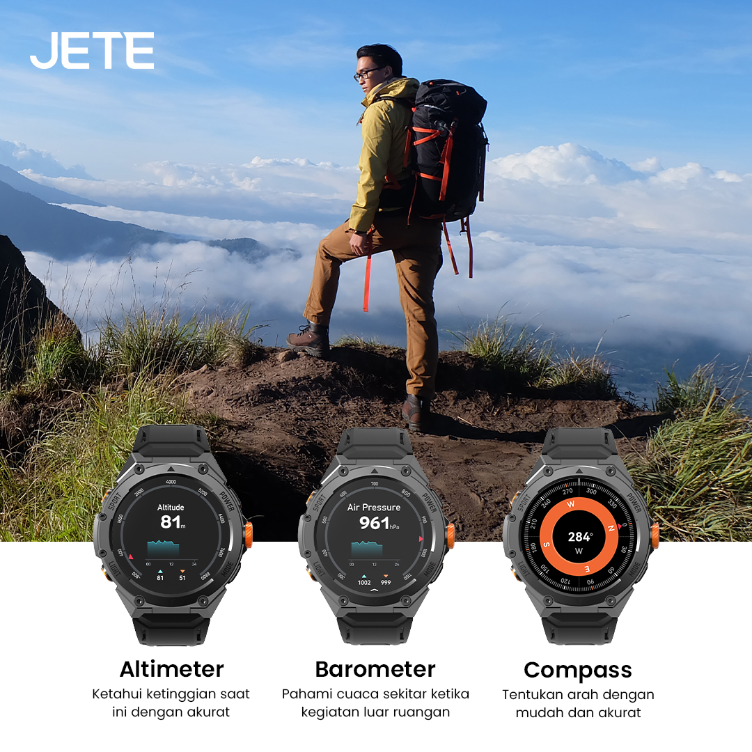 JETE VOLT 2x Pro dibekali dengan tiga fitur navigasi, menjadikan aktivitas outdoor semakin aman dan nyaman. Mulai dari altimeter untuk mengetahui ketinggian, barometer untuk melihat tekanan udara dan kondisi cuaca, serta kompas digital yang membantu dalam menentukan arah secara akurat.