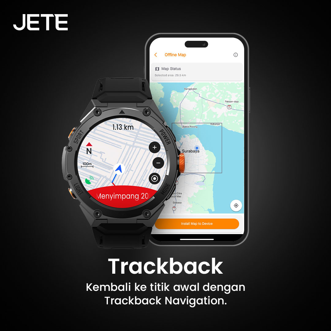 Fitur Trackback yang disematkan pada JETE VOLT 2x Pro memudahkan pengguna saat kembali ke titik awal dengan panduan lebih akurat. Sangat ideal digunakan untuk lari jalanan maupun trail run. Tak perlu khawatir lagi kehilangan arah, karena dukungan GPS yang diaktifkan dapat menentukan arah dengan baik.