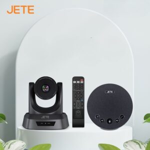 JETE GROUP video conference adalah perangkat konferensi audio dan video yang mudah dioperasikan dengan resolusi Full HD 1080p, 10x Zoom Optical, dan kontrol remote yang intuitif. Kamera dapat mencakup hingga 25 orang dalam ruangan dengan fitur 350° pan dan 90° tilt, serta dilengkapi dengan 6 preset kamera untuk pengaturan yang mudah.